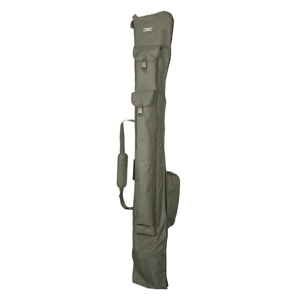 Un portacañas de nivel de entrada que ofrece espacio para 2 o 3 cañas de pescar montadas y más espacio para cañas de repuesto. El frente tiene 2 compartimentos de almacenamiento que son excelentes para transportar su red, bolsa de lastre o paraguas. En la parte posterior de la bolsa hay un bolsillo especial para el mango de la red de aterrizaje que, cuando se usa directamente, mejora la estabilidad y la protección de las cañas.Especificaciones:- Dimensiones: 195x30cm